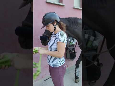 Monter sur un cheval ac pommes et céleri, c'est dur 🥲 #cheval #entresesoreilles #equitation #humour