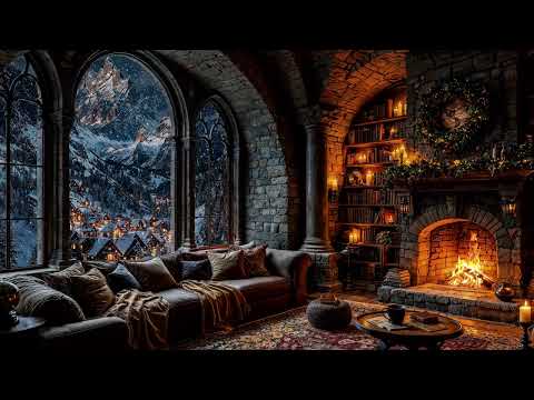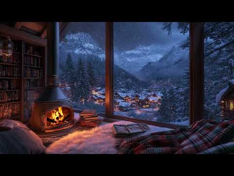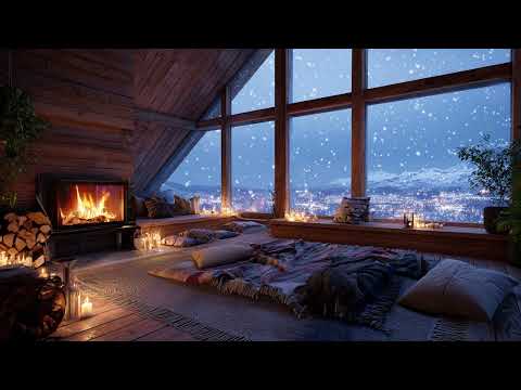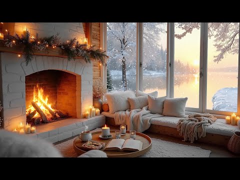 Cozy Winter Escape – Relax by a Crackling Fireplace as Snow Falls Outside for Ultimate Comfort