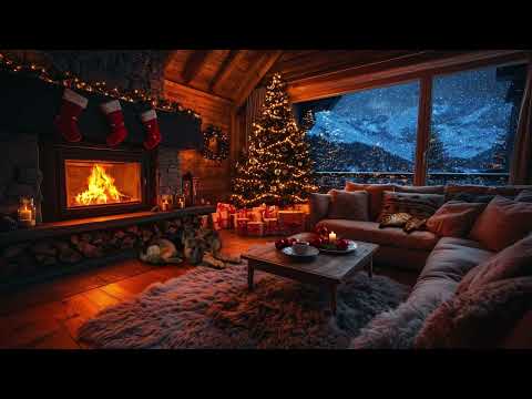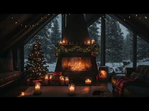 Warm Fireplace Ambience 2025✨ | Snow Christmas Night with Soft Piano & Cozy Cabin Vibes