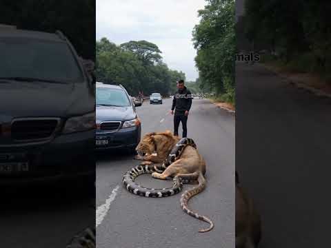 Scène à couper le souffle (python vs lion) #short