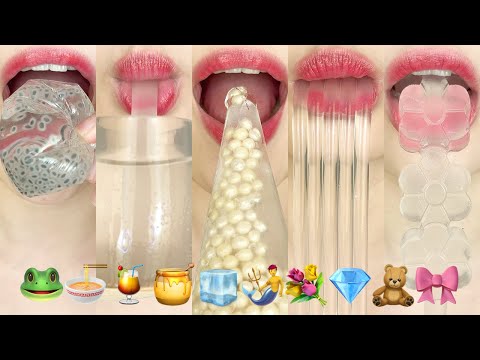 asmr CLEAR EMOJI FOOD JELLY 🐸🍜🍹🍯🧊🧜♂️💐💎🧸🎀 투명 이모지 먹방 eating sounds