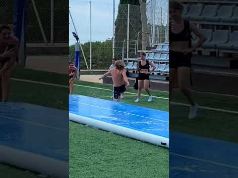 BIGGEST slip’n slide in the 🌏 #airtrack #gymnastics #tumbling #parkour #backflip #peopleareawesome