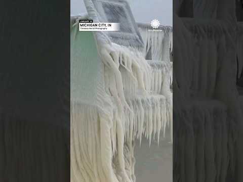 Icy Wonder: Lake Michigan Shoreline Frozen Over