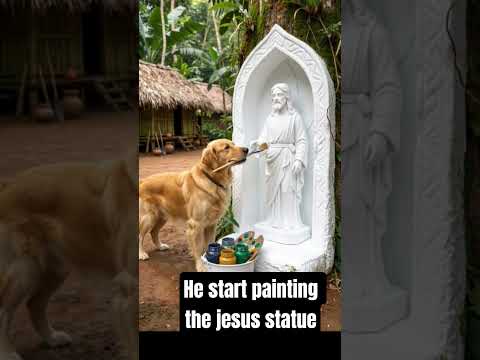 The dog Giving This Jesus Statue a Fresh Look 🙏🎨 Handled with love and respect ❤️ faith & miracles