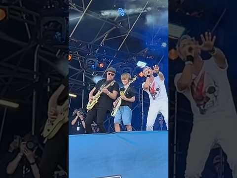 Can't believe this happened! π€― 10 year old asks band at festival to let him play guitar..