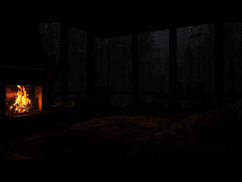 Stormy Night Cozy Cabin Ambience with Relaxing Rain and Fireplace Sounds for Sleeping and Reading