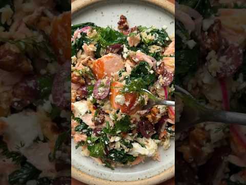 High-end quick healthy crispy salmon rice recipe 👍 #salmon #salad #rice #shorts