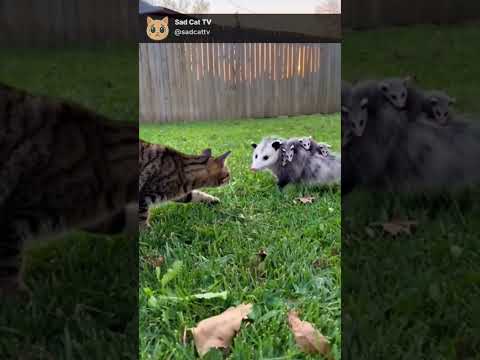 Cat Curiously Watches a Family of Possums... Then THIS Happens! 😱
