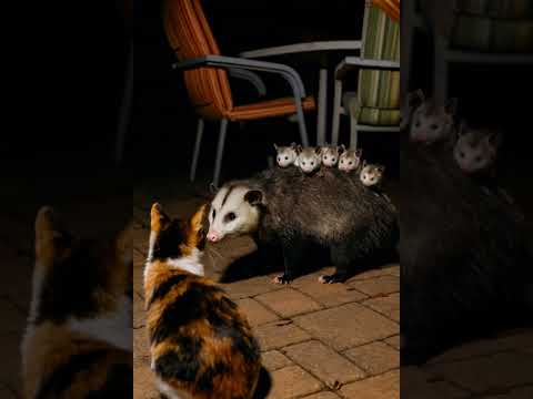 Cat Meets Opossum Family Unexpected Night #shorts #animals #opossum #cats #wildlife #viralvideo
