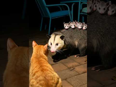 Cat meets opossum family Heartwarming Cat & Wildlife Clip #animals #shorts #adorable