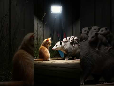 What Happens When a Possum Family Meets an Orange Cat? 🐾😲#shorts #cat #funnycats #funny #cute