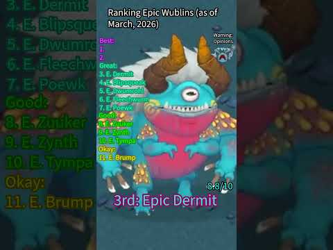 Ranking all Epic Wublins! (As of Epic Fleechwurm) (My Singing Monsters) #msm #shorts