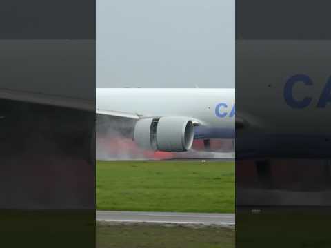 INSANE Full Reverse Thrust on Wet Runway #aviation #landing #schipholairport #b777 #planespotting