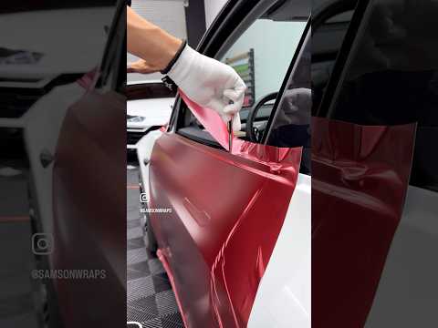 Wrapping This Tesla Model Y In A SATIN RED CHROME! Follow Us On Instagram For More (@samsonwraps)