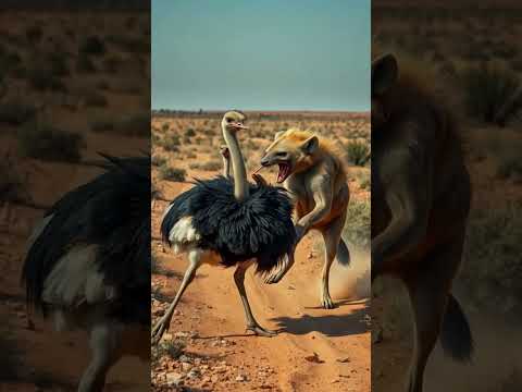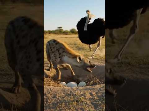 Hyena vs. Giant Ostrich: A Wild Savannah Encounter! 🐾🥚 #WildLife #Nature #Savannah #Hyena #Ostrich