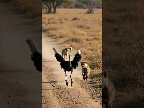 Two Hyenas Chase an Ostrich… | #wild #animals #ostrich #hyena