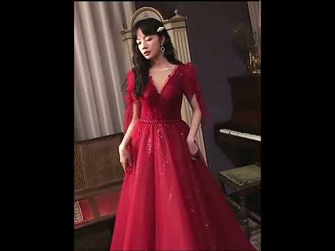 Elegant Evening Dresses V-Neck Tulle Sequin Party Gowns