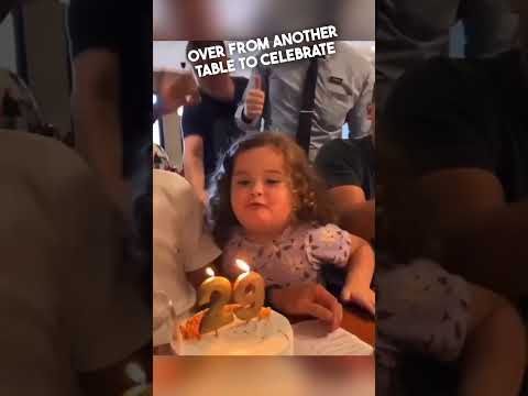 Young girl with autism blows out a stranger's birthday candles