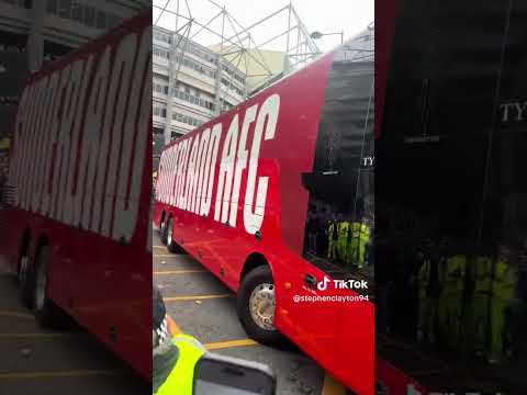 Newcastle United fans launching bottles at the Sunderland team coach today