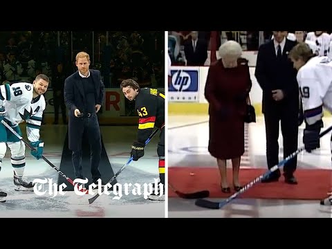 Prince Harry mirrors Queen by dropping puck at ceremonial ice hockey faceoff