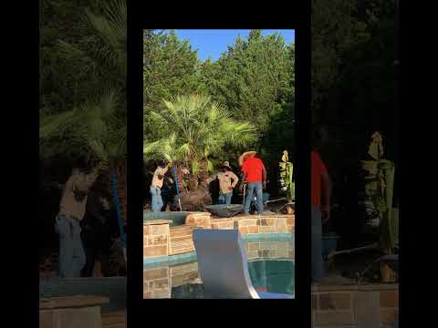 Palm tree installation π΄π΄ #dfwpoolbuilder #pool #wylietx #concretedesign #custompools