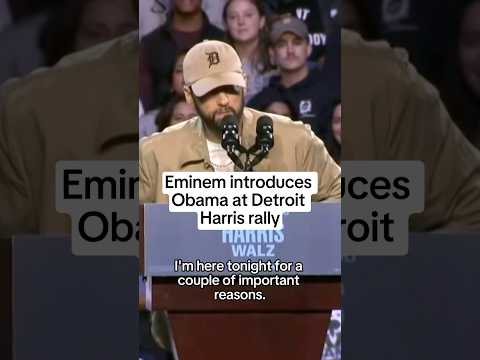 Eminem introduces Obama at Detroit Harris rally