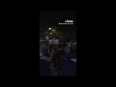 Des parisiens célèbrent la défaite de Rachida Dati aux élections municipales devant son QG.