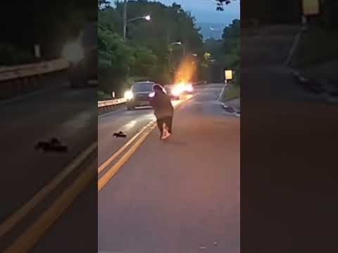 Friend records us saving a baby skunk from the road