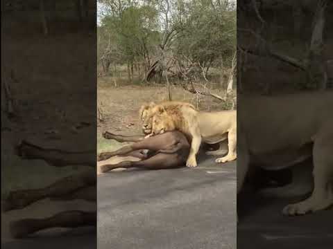 LEÕES DERRUBA um BUFFALO bem na frente dos turistas em uma estrada #shorts