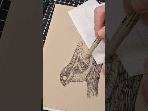 Drawing a Nightjar bird in fineliner pens on toned paper #birddrawing #pendrawing #drawing #art