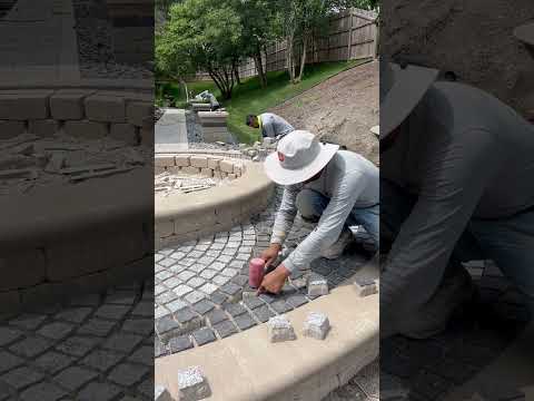 Creating a beautiful paver design! #unilock #construction #pavers #patio #frontyard #outdoorliving