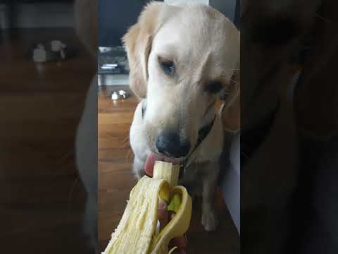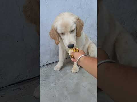Cute Golden Retriever Puppy Eats A Banana For The First Time!