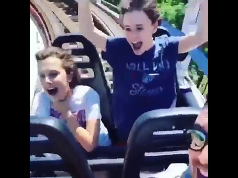 Noah schnapp and Millie Bobby Brown in rollercoaster😂😂😂😂