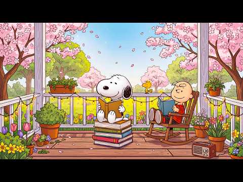 Snoopy Spring Balcony Lofi 📚 Cherry Blossom Reading Vibes ☕ Chill Beats for Study / Relax / Focus