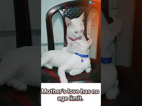 A Mother’s Love Never Ends ❤️ White Cat Grooming Her Son #CatLove #MotherAndSon #love #WhiteCat