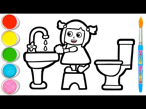 Dibuja y Colorea la Imagen de una Niña Lavándose las Manos 🧼🤚🧼 Buenos Hábitos #105