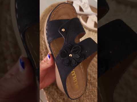 Incaltaminte dama pentru vara 🔆 Papuci din piele brodati cu motive florale grecesti 🌊