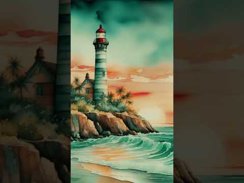 "Lighthouse Serenity: A Captivating Sunset Scene in Alcohol Ink"