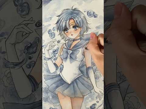 Sailor Mercury 🫧✨ watercolor painting process 🤍 #sailormoon #sailormercury #painting #watercolor