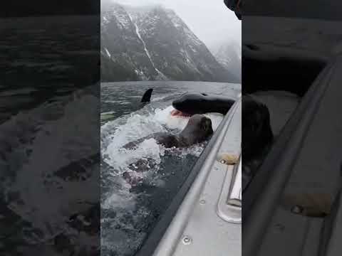 UNBELIEVABLE Orca JUMPS ONTO BOAT Hunting Mother Sea Lion!