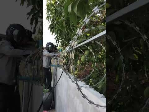 How to install Concertina Barbed Razor Wire with Frame #construction #security #fence