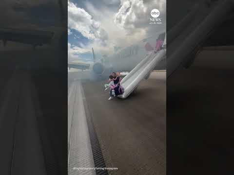 Passengers exit plane via emergency slide after aborted takeoff