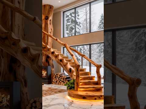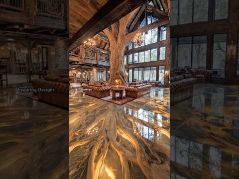 This epic tree fireplace is absolutely stunning! 🤯👏 #interiordesign #homedesign #rustic