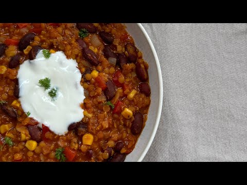 Vegan Lentil Chili Recipe (high protein!) 🥄 #veganchili #lentilrecipe
