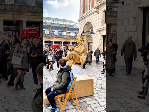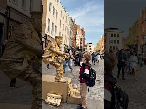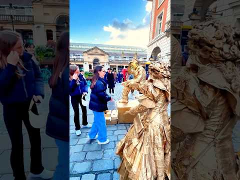 How London Levitating Goldman works with the Gold Lady to entertain the public.#livingstatue #art