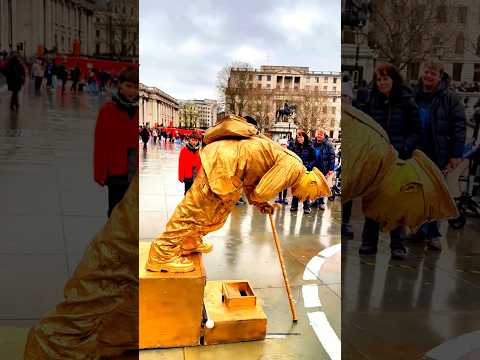 How London Levitating Goldman Statue works hard to entertain people.#livingstatue #floating #art