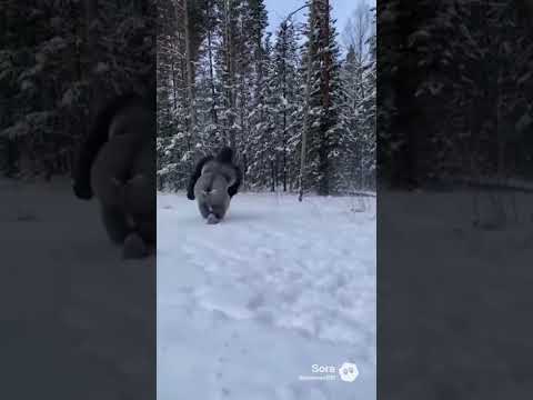 Gorilla Snow Attack! Cat Runs for His Life 😂❄️ #cat #funny