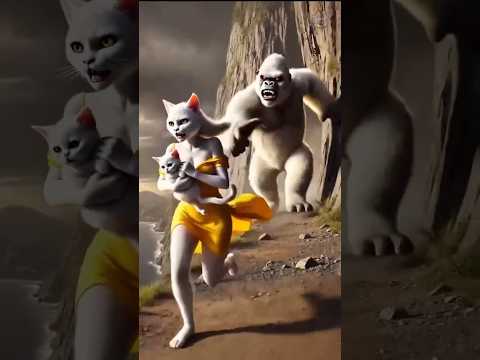 "Epic Chase: Gorilla vs Cat Family | Animated Short Story"#cat #shortvideo #ai #funny
