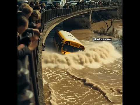 Terrifying Moment School Bus Gets Swept Away Floodwaters as Bridge Collapses #LeaEspinosaAi #shorts