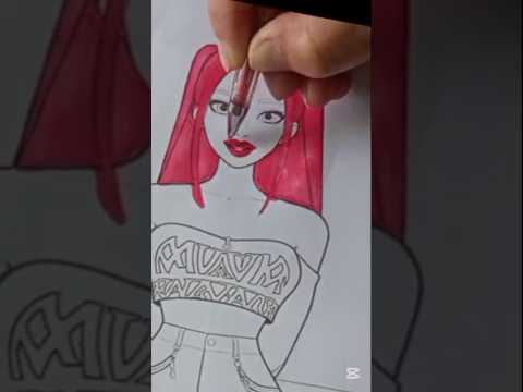 Coloring Mira — K-pop demon hunter with a dark cute vibe 🖤✨ #kpop #cartoon #comedy